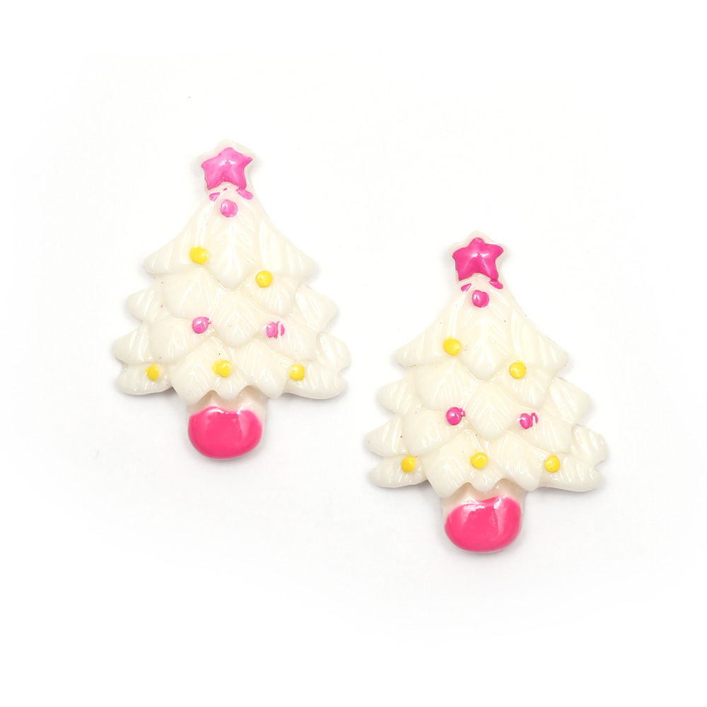 Weisse Weihnachtsbäume Kinderohrclips. Die Ohrclips werden einfach an das Ohrläppchen geclipst und es werden keine Ohrlöcher benötigt. Bestens geeignet für Kinder, die keine Ohrlöcher haben.