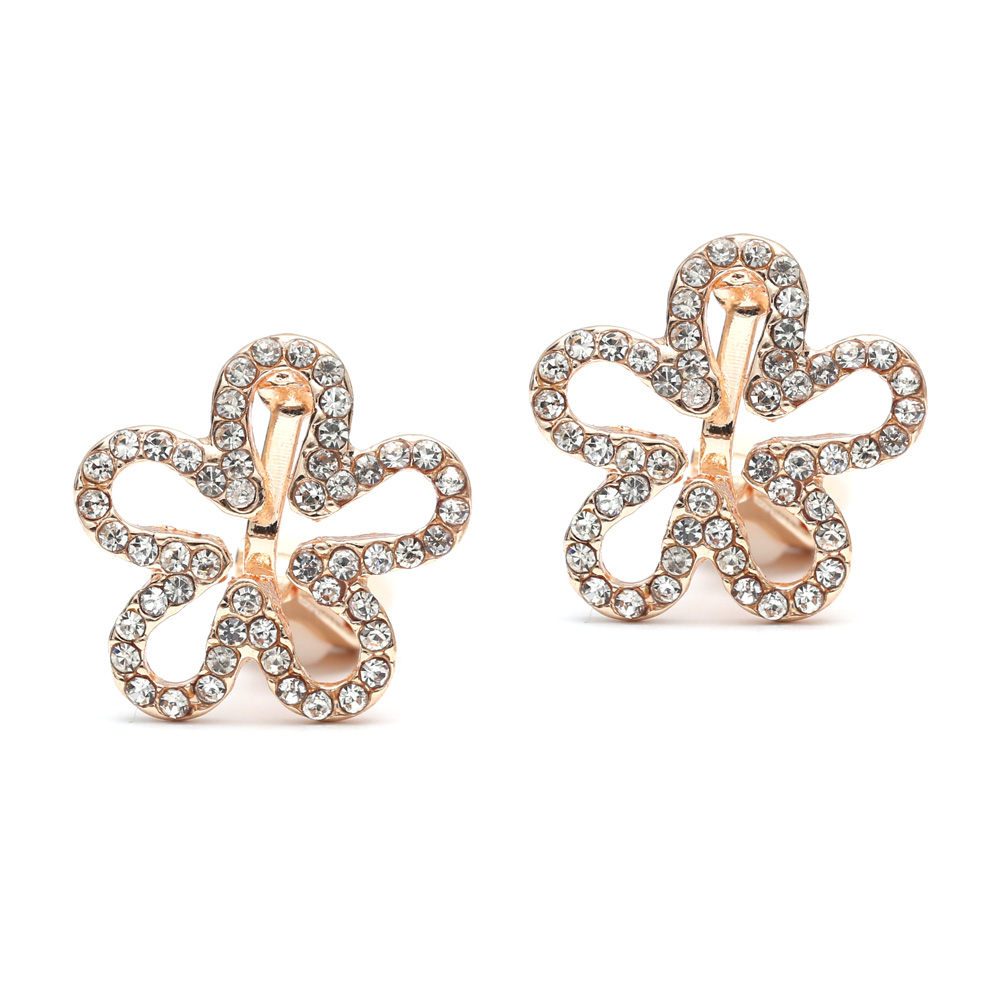 Gold-tone diamante crystal flower clip on earrings