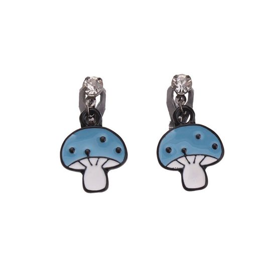Cute enamel white and blue spotty mushroom with crystal drop clip-on earrings. Lovely pair of clip on earrings that ideal for non-pierced ears. Perfect gift to give away or a treat for yourself. No piercing required to wear these earrings. Earrings size approx. 14 x 25 mm.