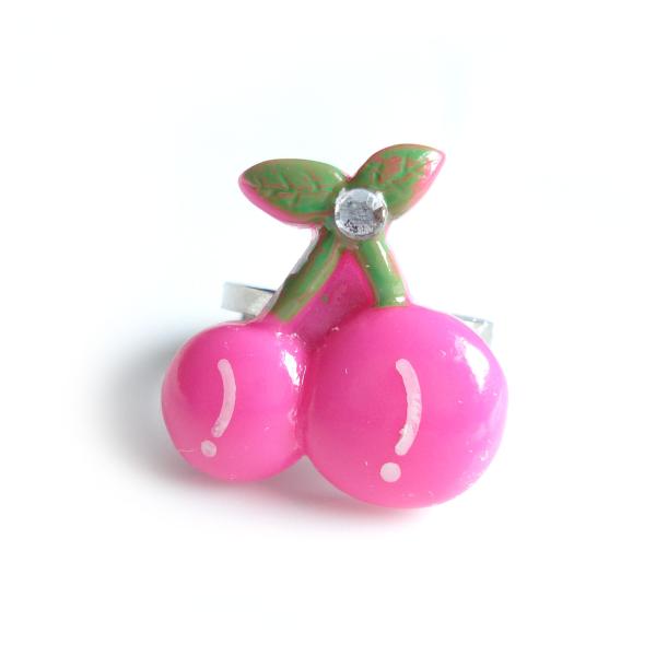 Rosa Kirschen. Der Ring ist flexibel und passt sich selbständig der jeweiligen Fingergrösse an und kann selbst noch von Erwachsenen mit kleineren Fingern getragen werden.