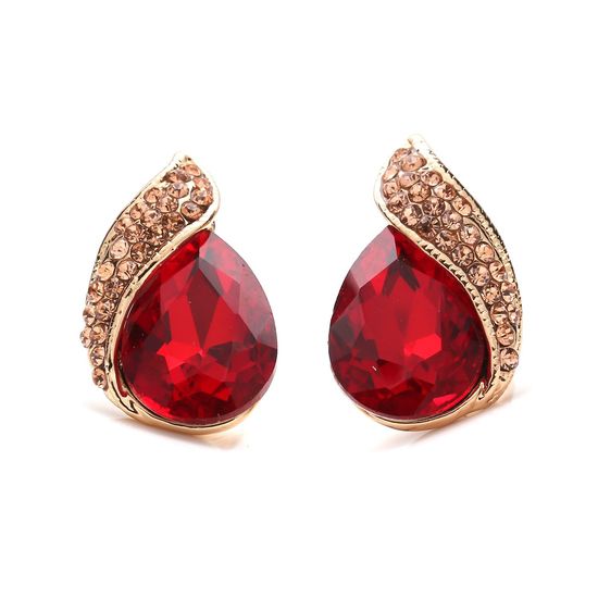 Einfach toll und modisch sind diese Ohrclips. Im Mittelpunkt der Aufmerksamkeit stehen die facettierten und tropfenförmigen Kristalle in majestätisch roter Farbe. Diese Kristalle werden auf einer Seite von einem Band flankiert, welches mit funkelnden Zirkoniakristallen bestückt ist. Dies macht die Ohrclips auch asymmetrisch, sprich das Paar besteht aus einem linken und rechten Stück, was diesen Ohrschmuck erst so richt interessant macht!