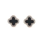 Gold-Plated Black Cross with Crystal Clip On Earrings