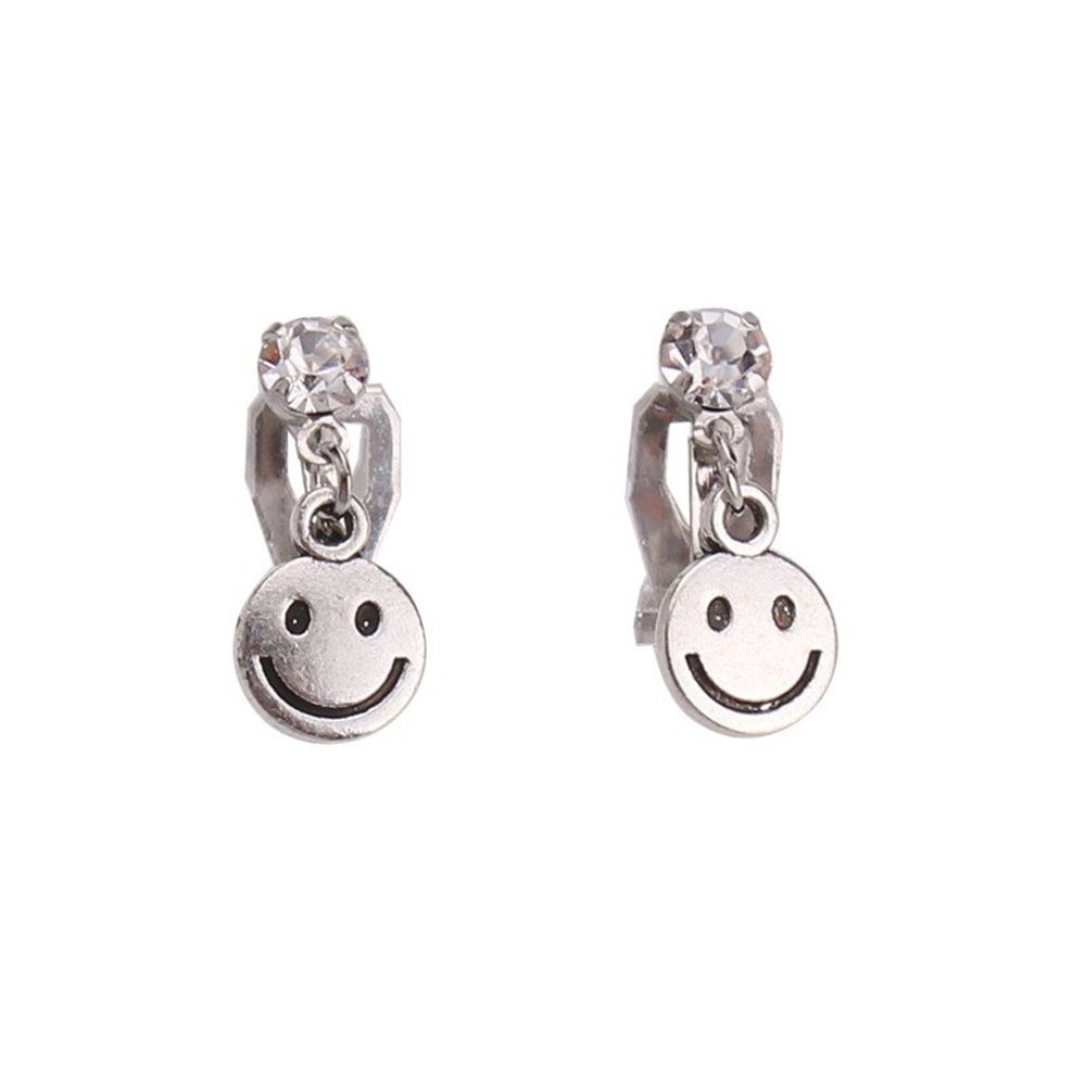 Cute silver tone smiling face drop clip-on earrings. Lovely pair of clip on earrings that ideal for non-pierced ears. Perfect gift to give away or a treat for yourself. No piercing required to wear these earrings. Earrings size approx. 10 x 18 mm.